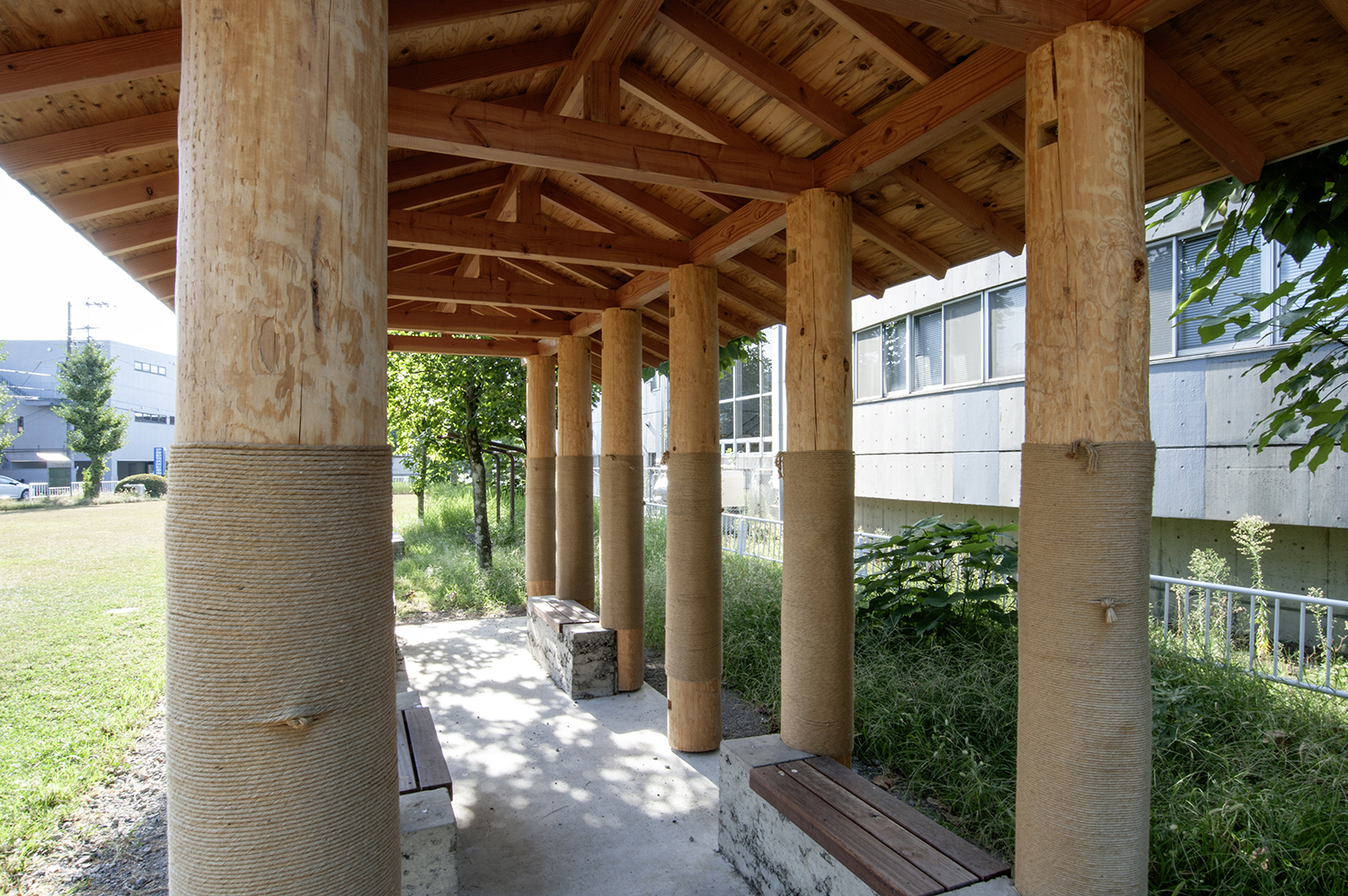 WORKSページを更新しました。公園の四阿「土と木の四阿」を公開しました。版築のベンチと皮むき丸太の原木を使いました。ぜひご覧ください。